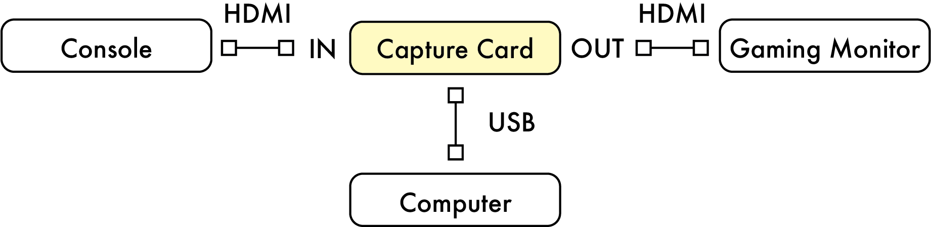 Far and away the most widely-used capture cards are manufactured by **Elgato.** Their website offers specific instructions for installation, depending on the model, but the basic structure involves connecting the capture card to your console via HDMI, your gaming monitor via HDMI, and your computer via USB.